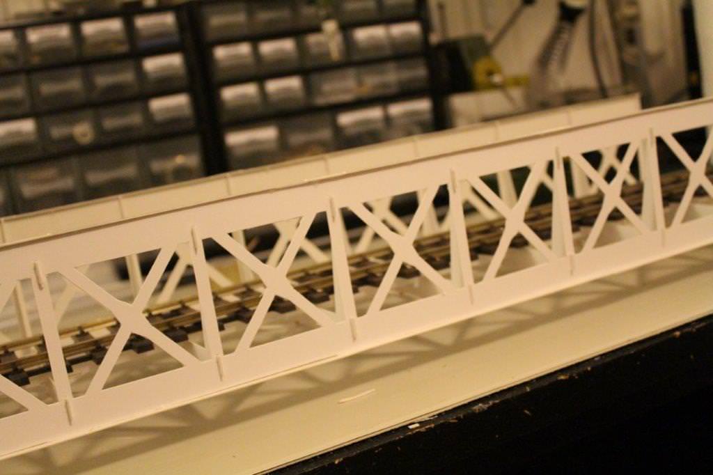 Jørgen Christensen fra Spor1 Trekanten er ved at færdigbygge den inderste bane på klubbens udstillingsanlæg færdig, i den forbindelse fremstilles en model af broen over Skive Å, den som havnesporet i sin tid benyttede.