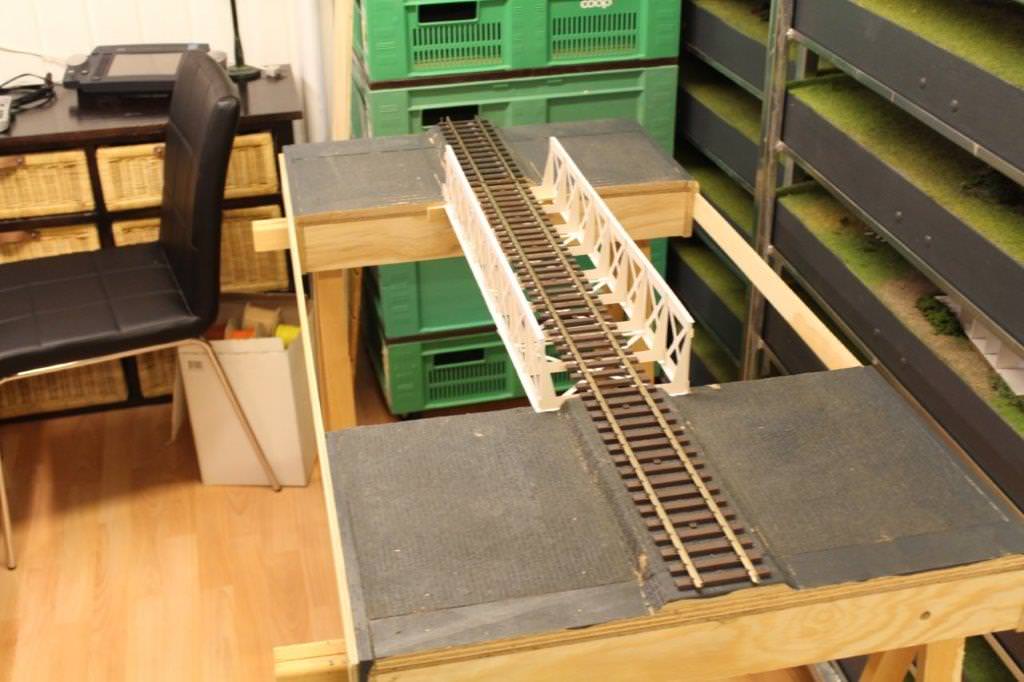 Det er planen at den færdige bro skal være hængslet, så de hårdt prøvede medlemmer i Spor1 Trekanten ikke skal dukke sig, når de skal gå fra den ene til den anden ende af modulanlægget.