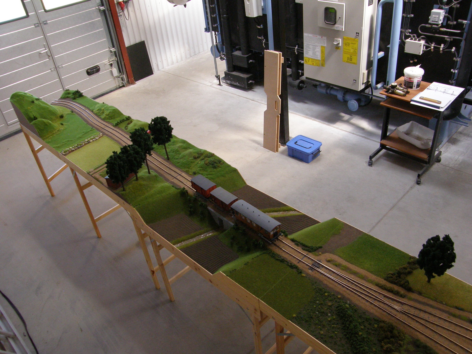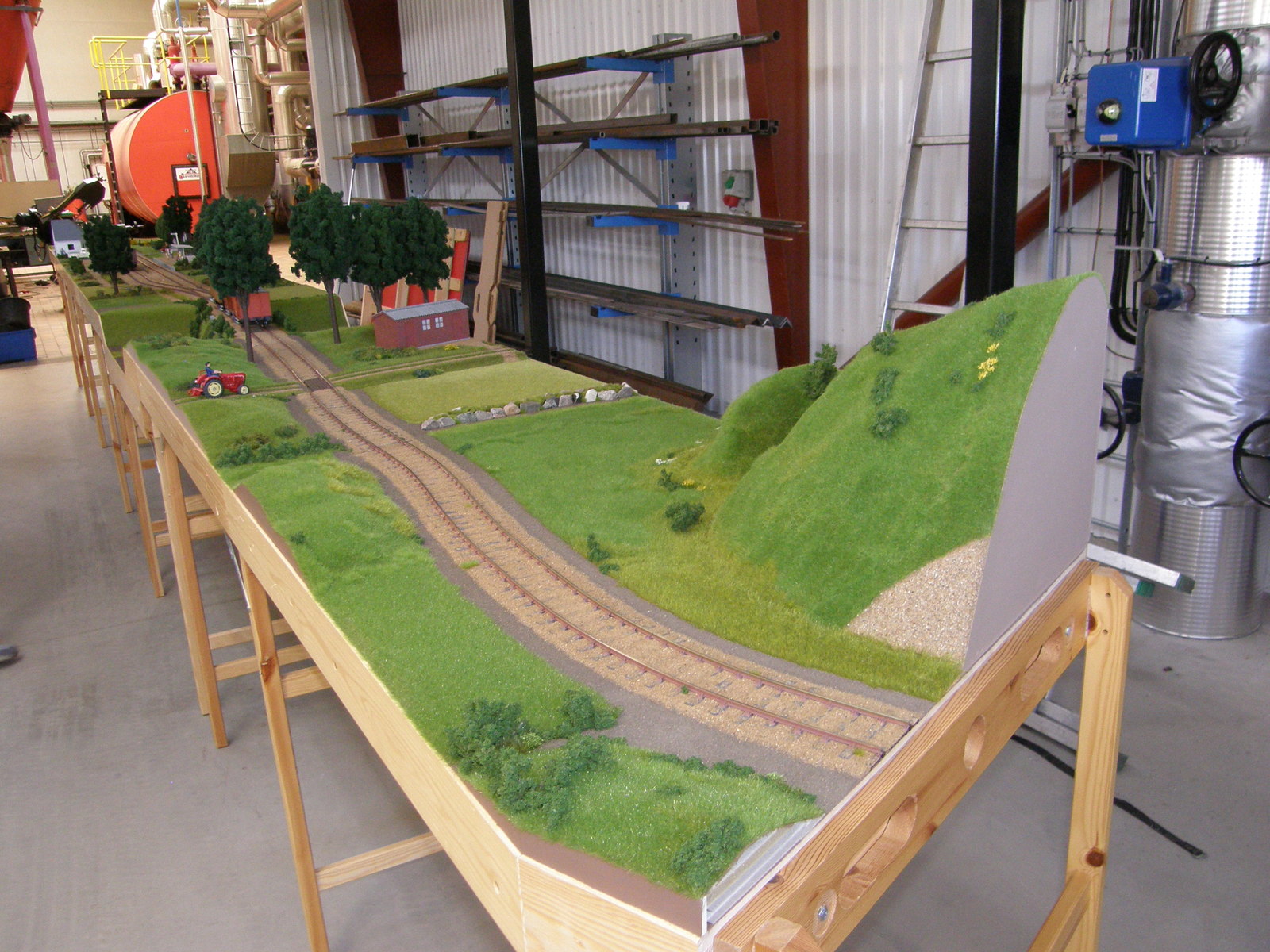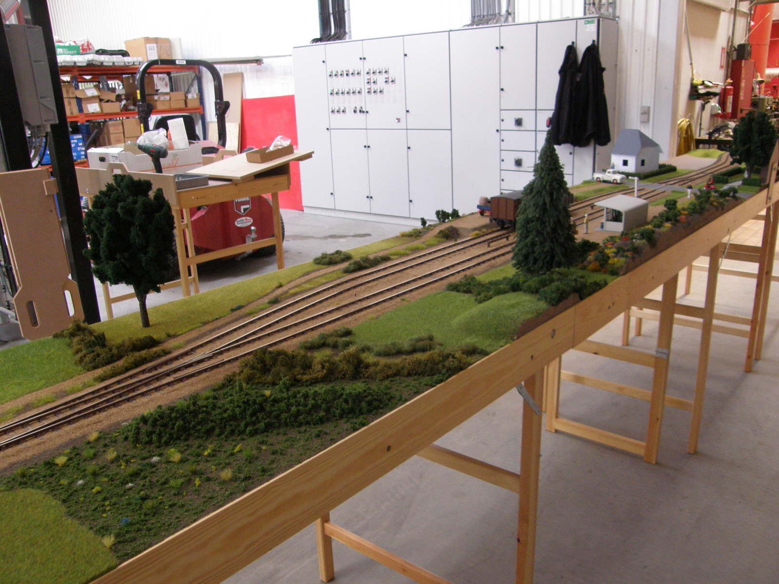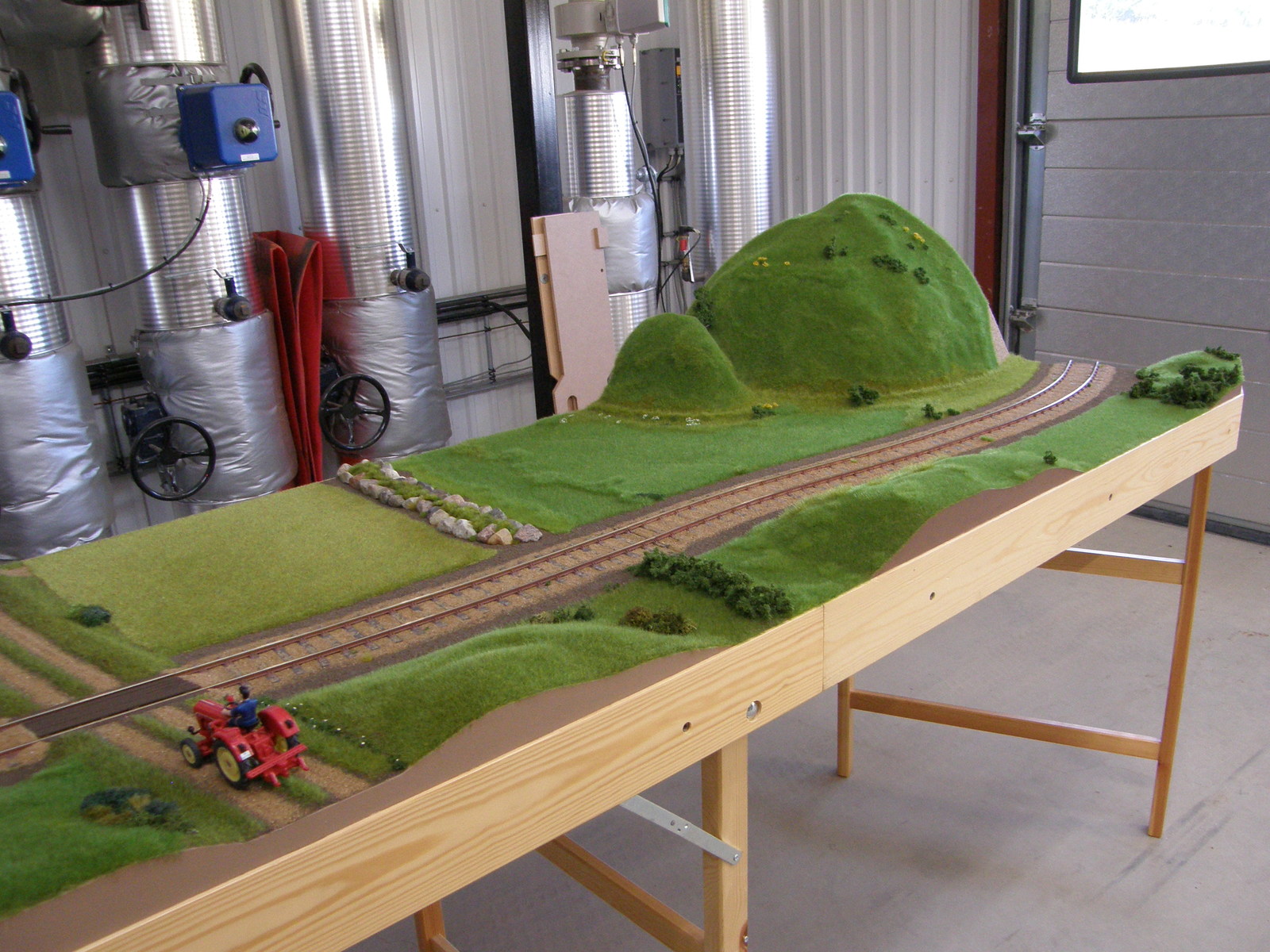 Modulerne er nu næsten dækket 100% med landskab, men der resterer dog stadig en lille smule før det er helt færdigt – og helt færdig bliver en modeljernbane vel aldrig, man kan altid finde på lidt mere og forskønne den med!