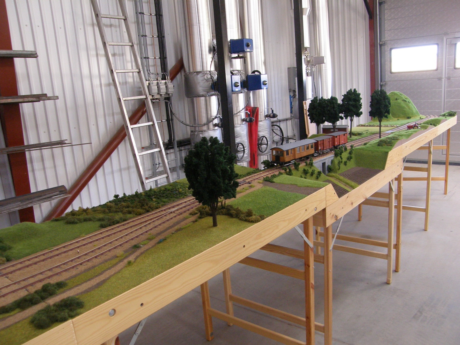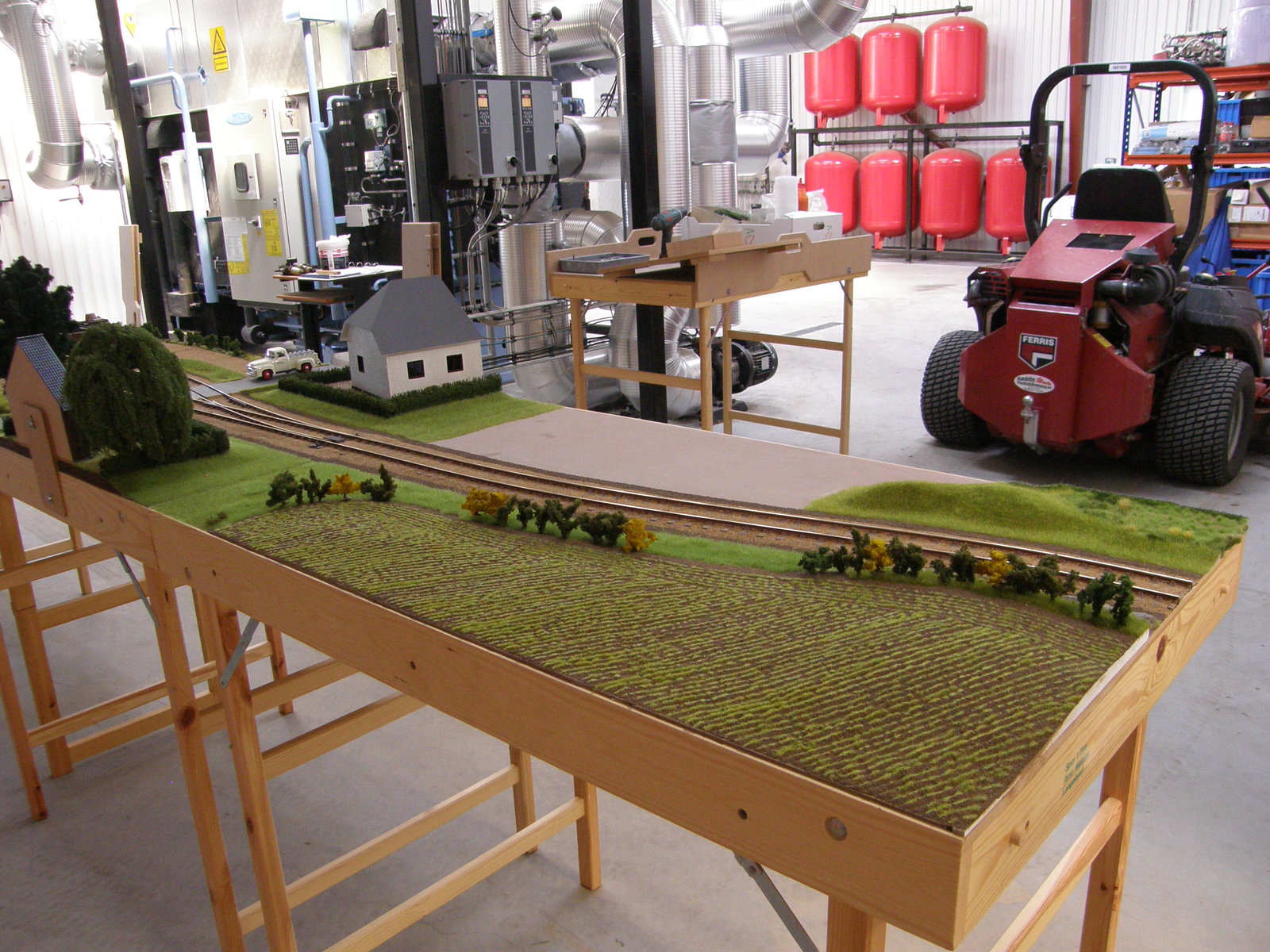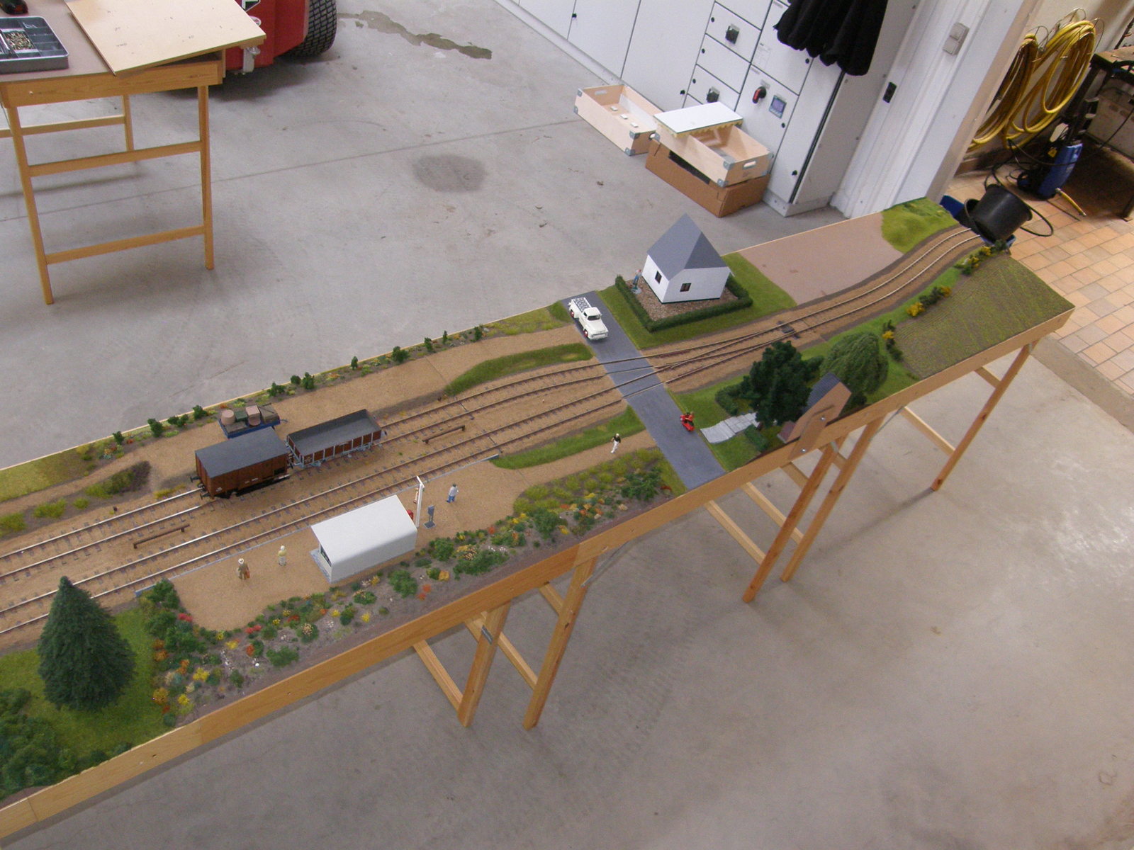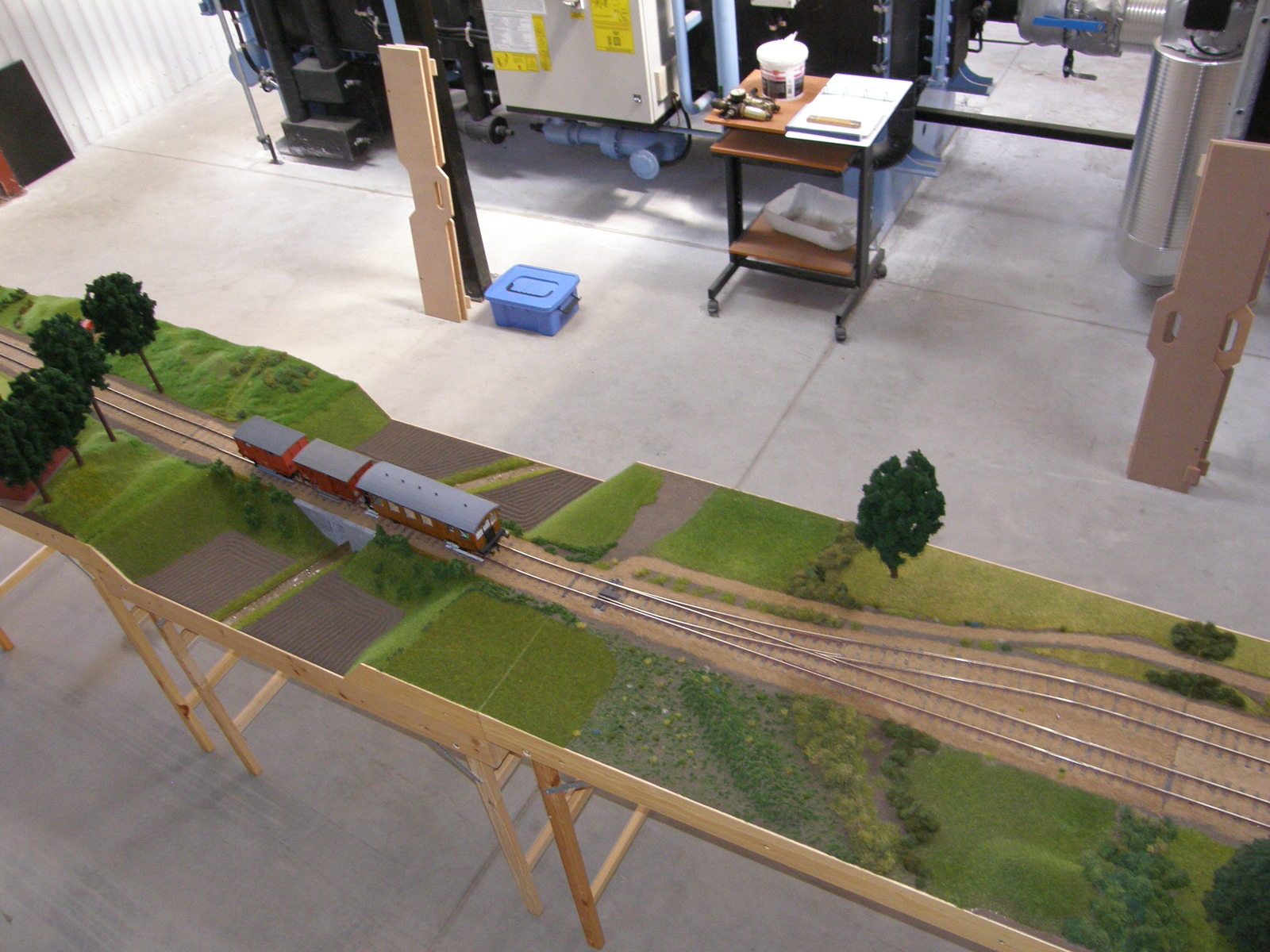 Modulerne er nu næsten dækket 100% med landskab, men der resterer dog stadig en lille smule før det er helt færdigt – og helt færdig bliver en modeljernbane vel aldrig, man kan altid finde på lidt mere og forskønne den med!