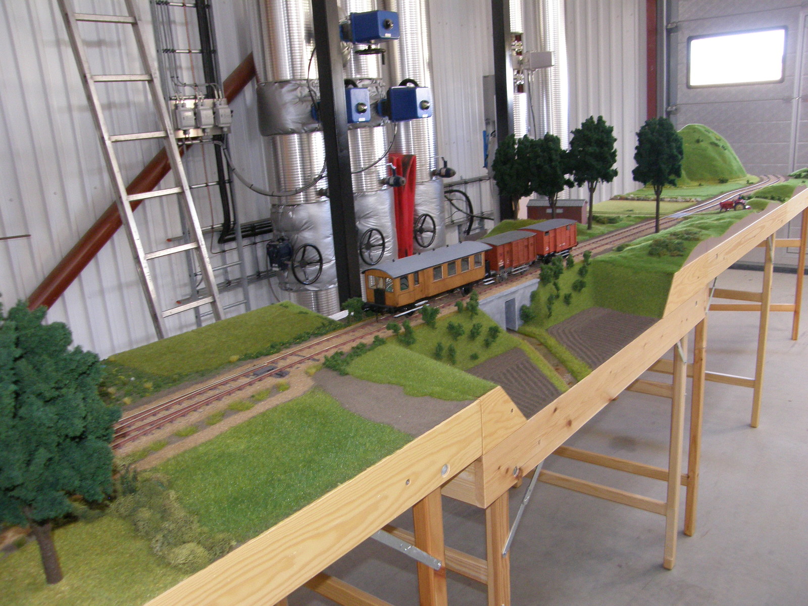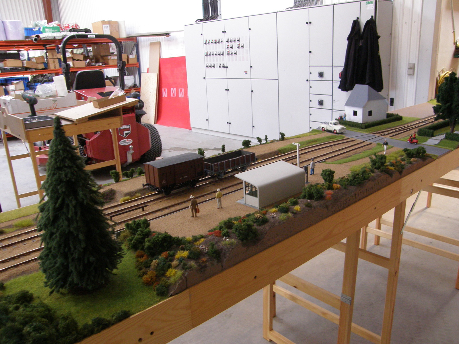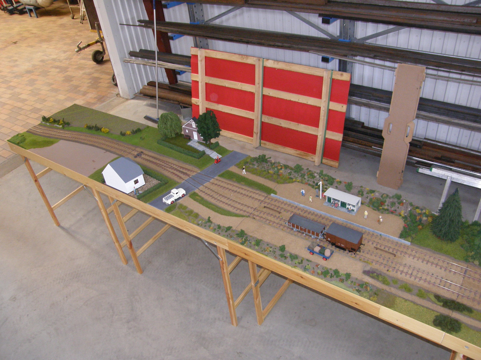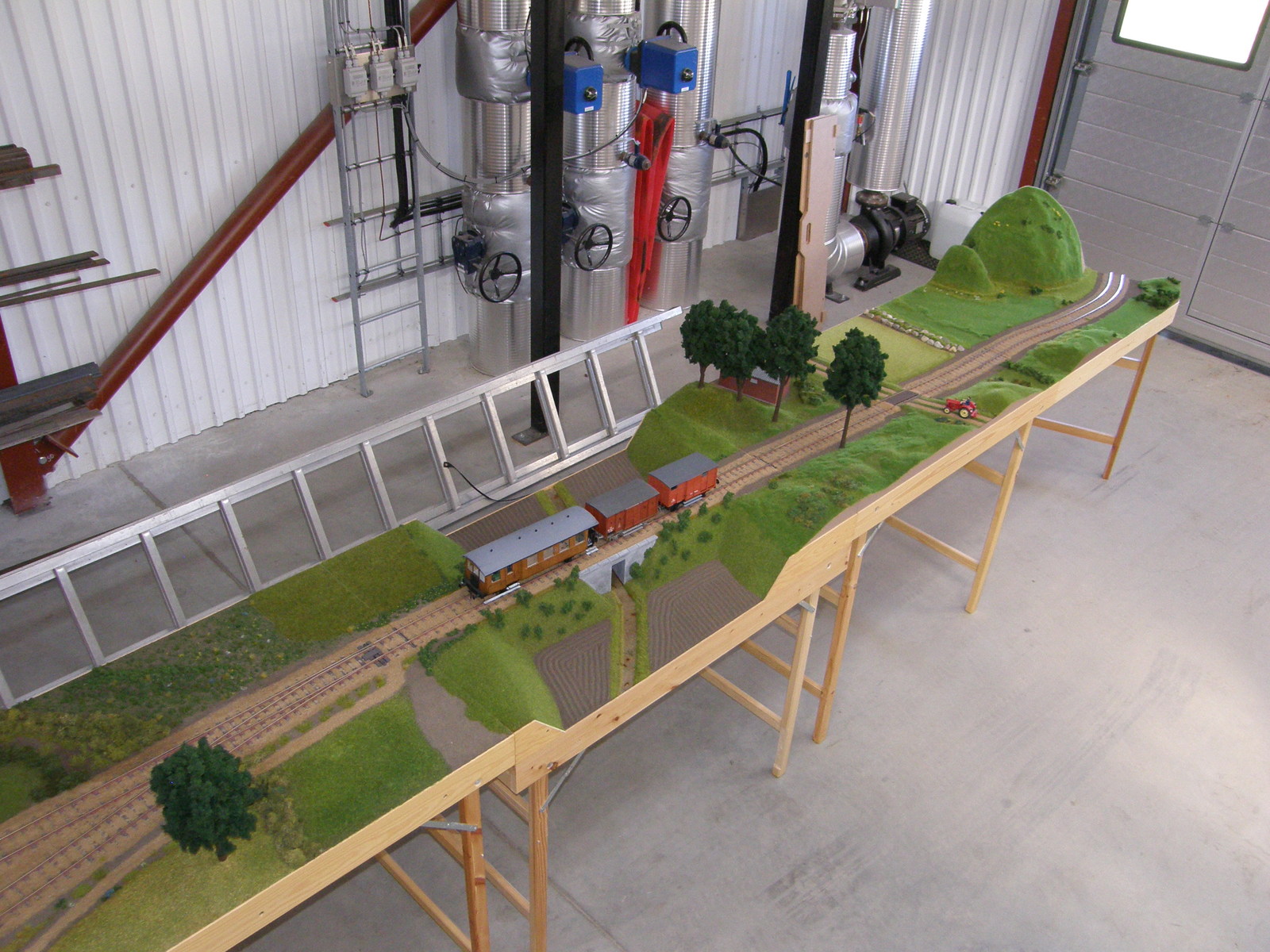 Modulerne er nu næsten dækket 100% med landskab, men der resterer dog stadig en lille smule før det er helt færdigt – og helt færdig bliver en modeljernbane vel aldrig, man kan altid finde på lidt mere og forskønne den med!