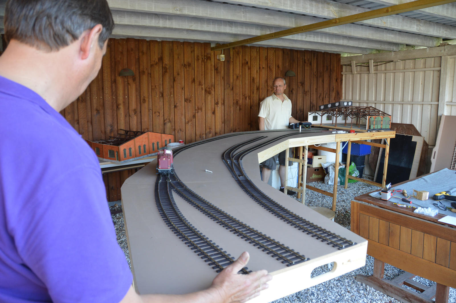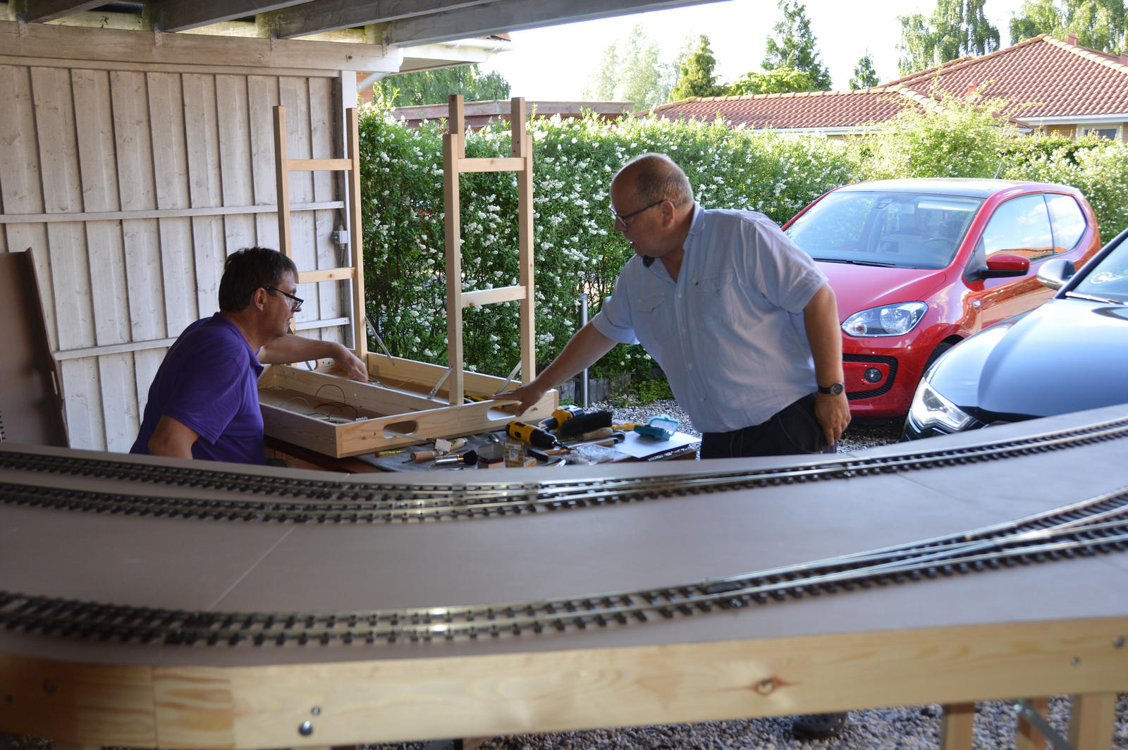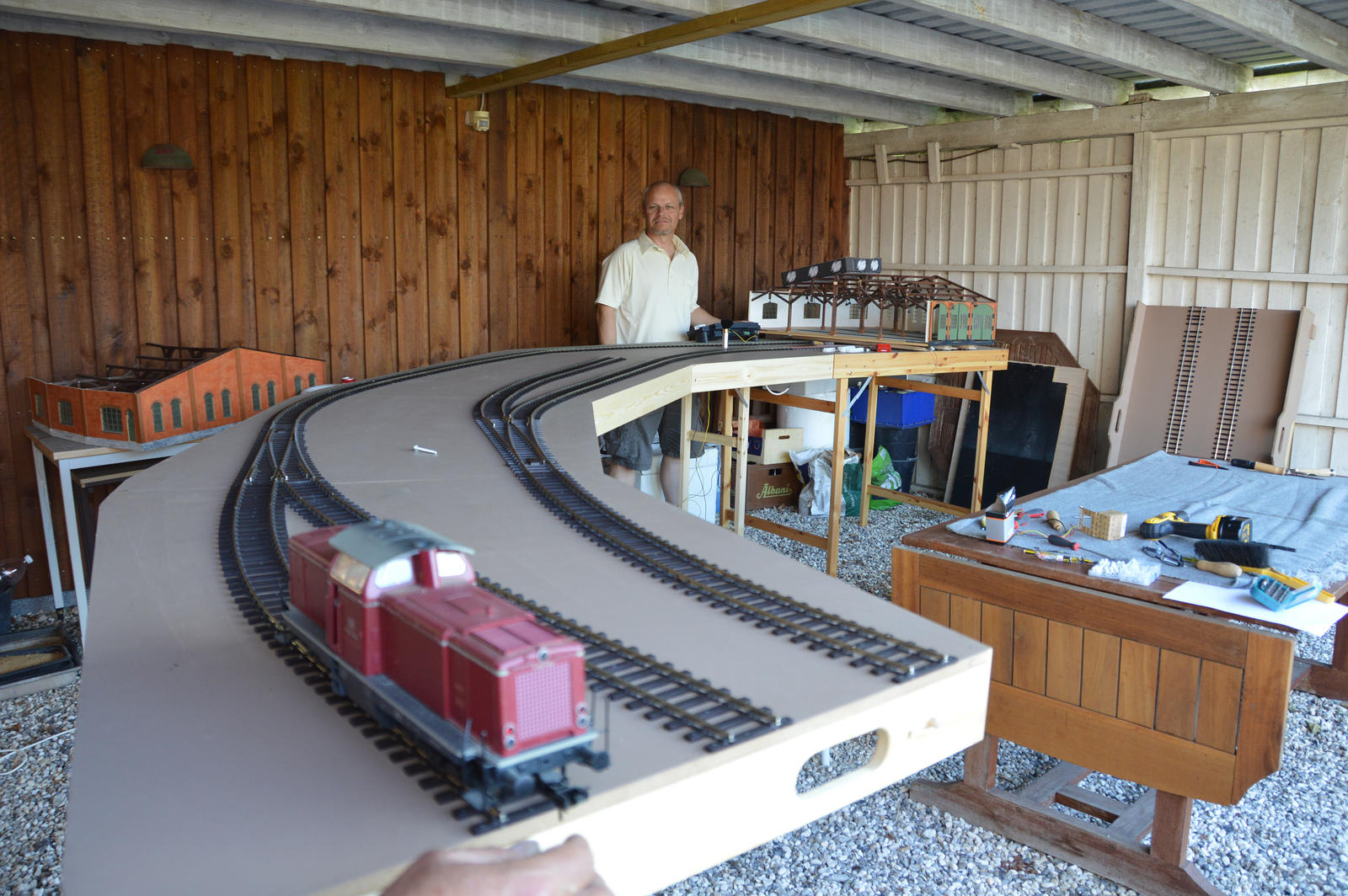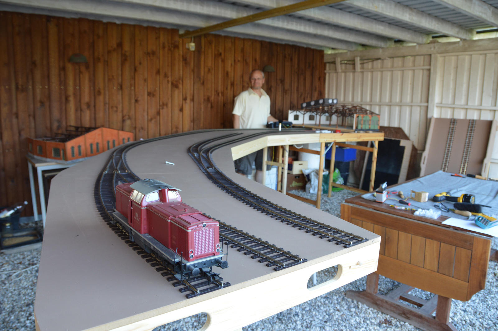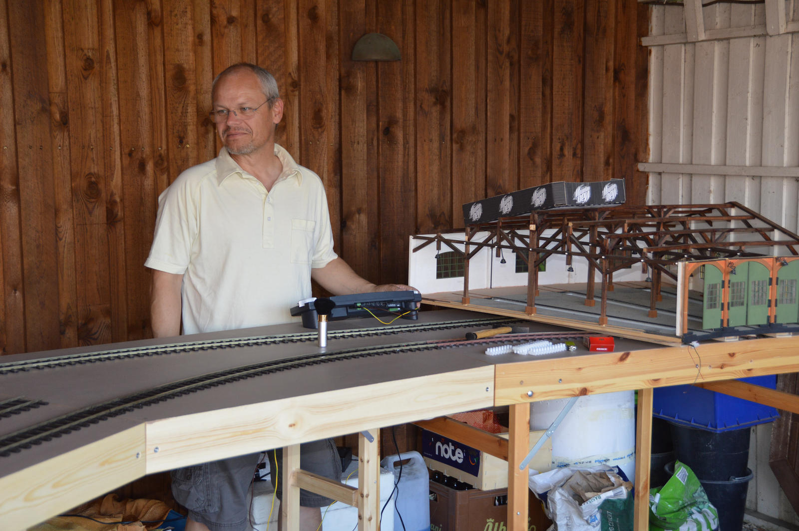 Skrøbelev sporene tilpasset og færdiglagt – søndag eftermiddag, nu kan den glade modul ejer få trukket strøm og komme til at fylde oversiden af modulerne med spændende ting.