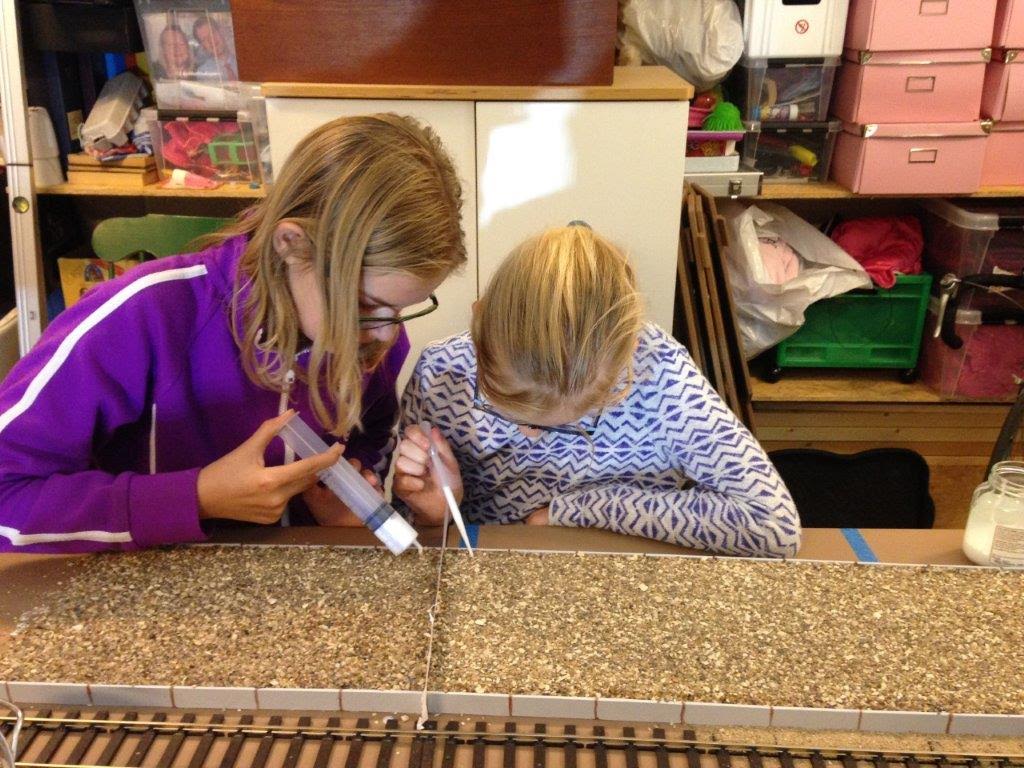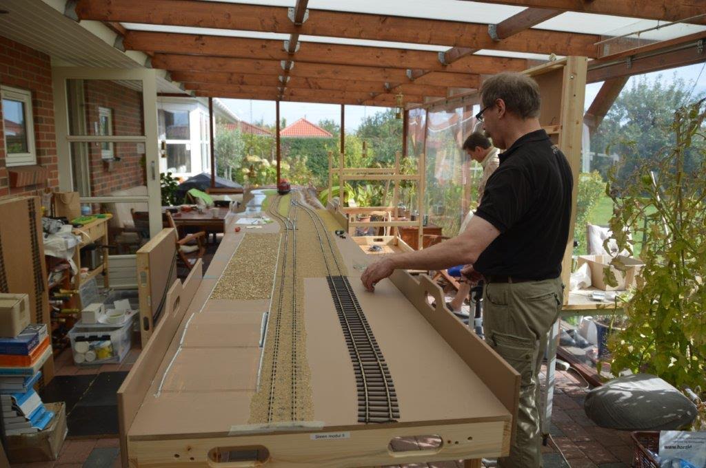 På hjemmefronten er der blevet arbejdet videre i garagen, primært med landskabet på Skrøbelev modulerne nummer 4 og 5, hvor familien nu flittigt hjælper til samt benytter modulerne til egne formål!  😉