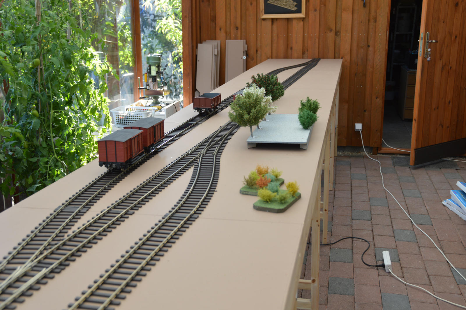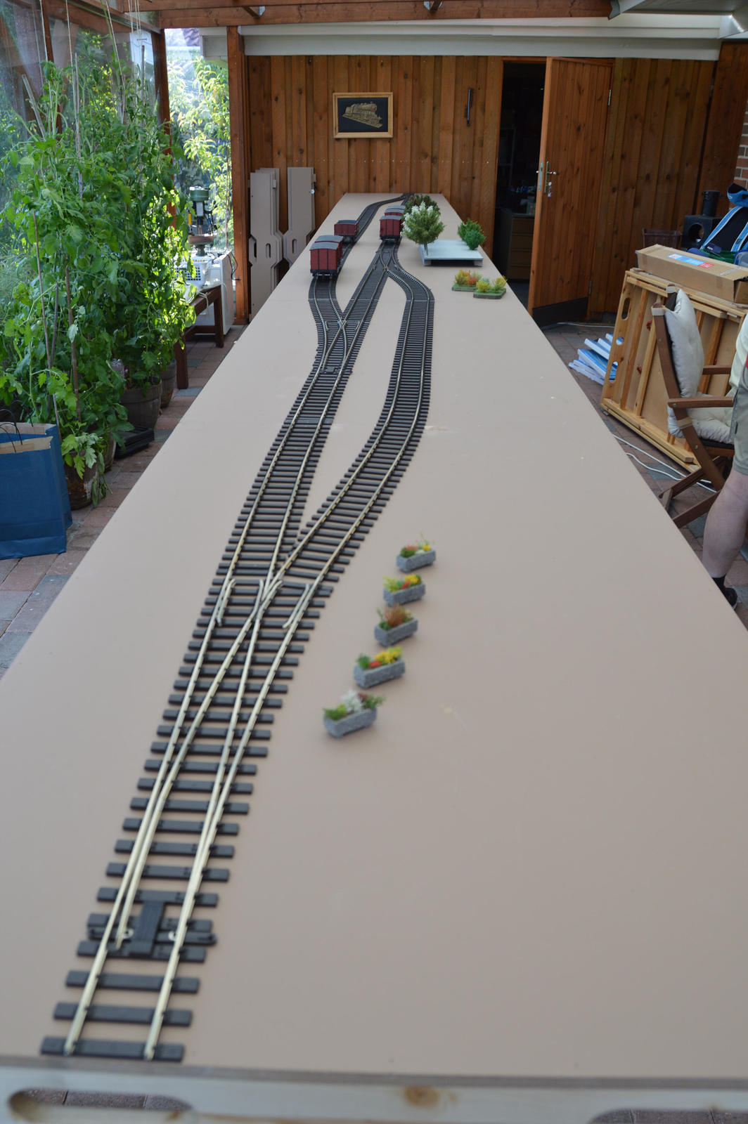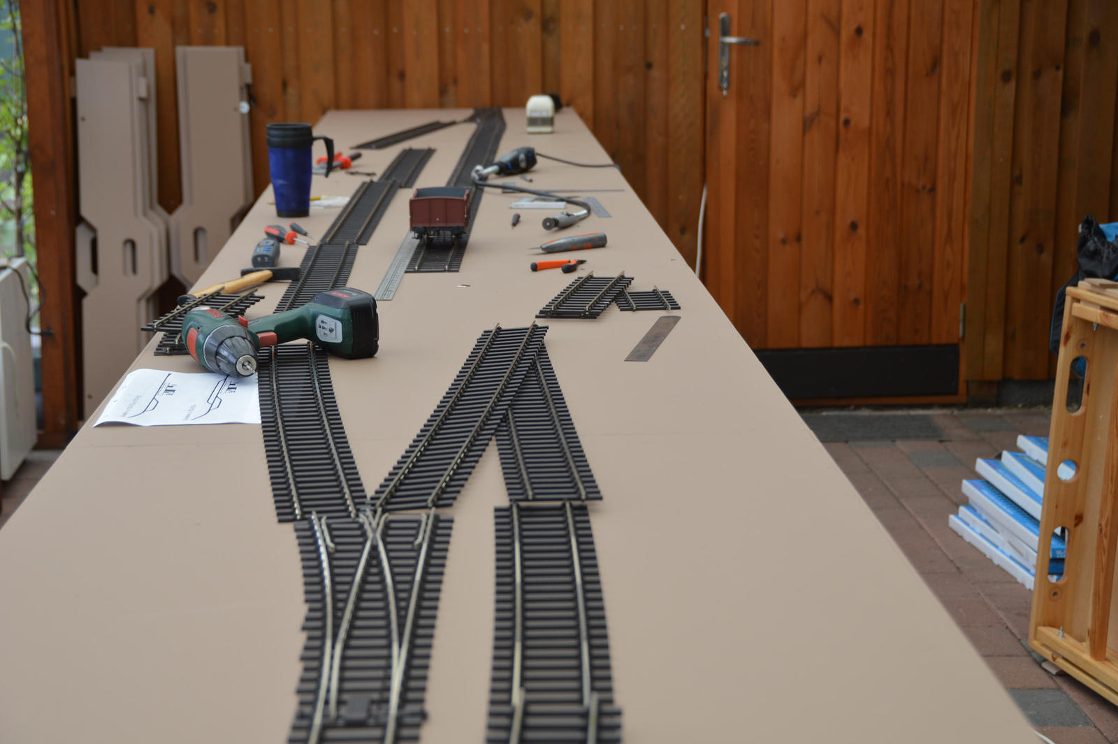 Skrøbelev sporene tilpasset og færdiglagt – søndag eftermiddag, nu kan den glade modul ejer få trukket strøm og komme til at fylde oversiden af modulerne med spændende ting.