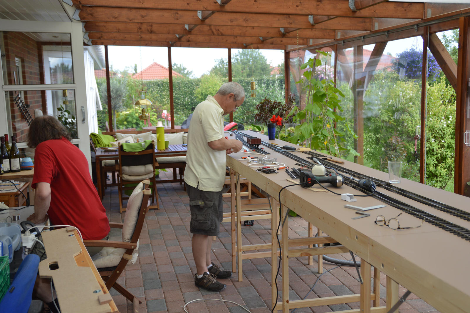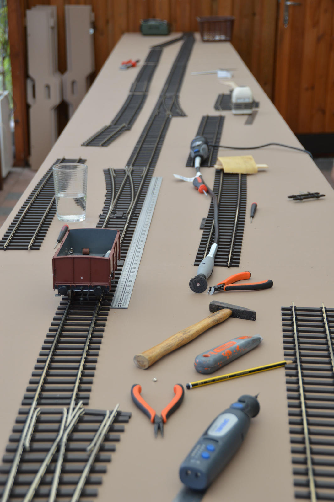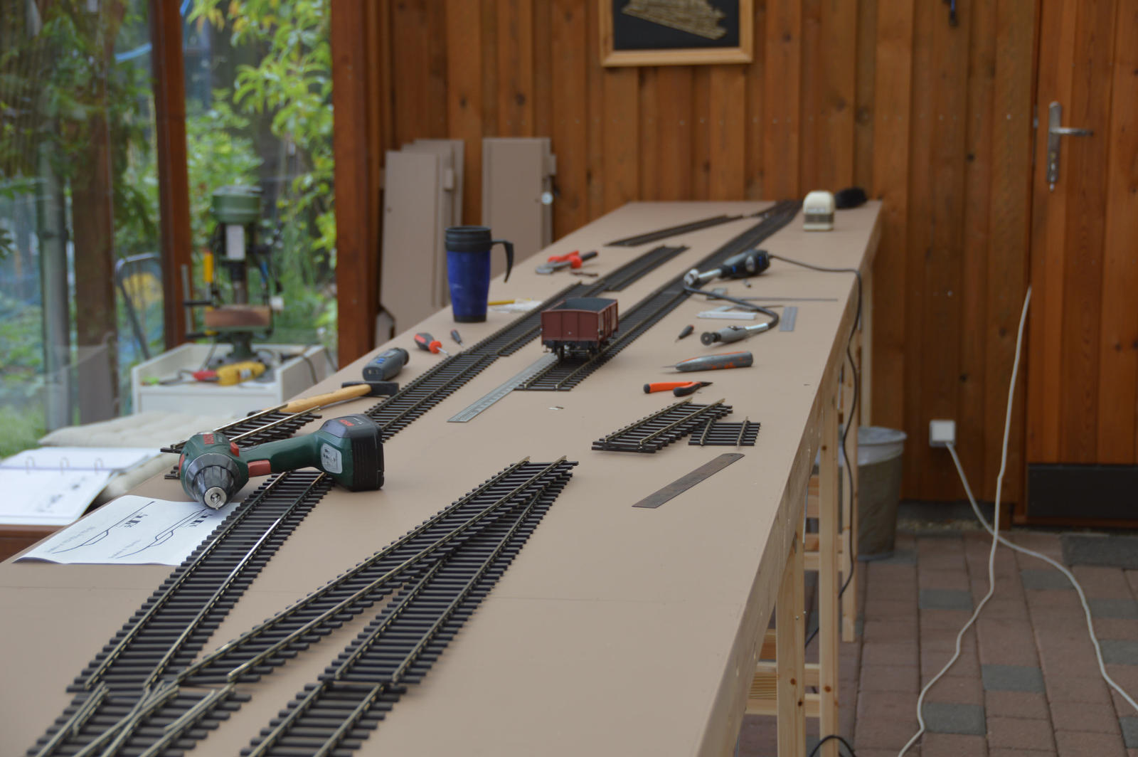 Skrøbelev sporene tilpasset og færdiglagt – søndag eftermiddag, nu kan den glade modul ejer få trukket strøm og komme til at fylde oversiden af modulerne med spændende ting.