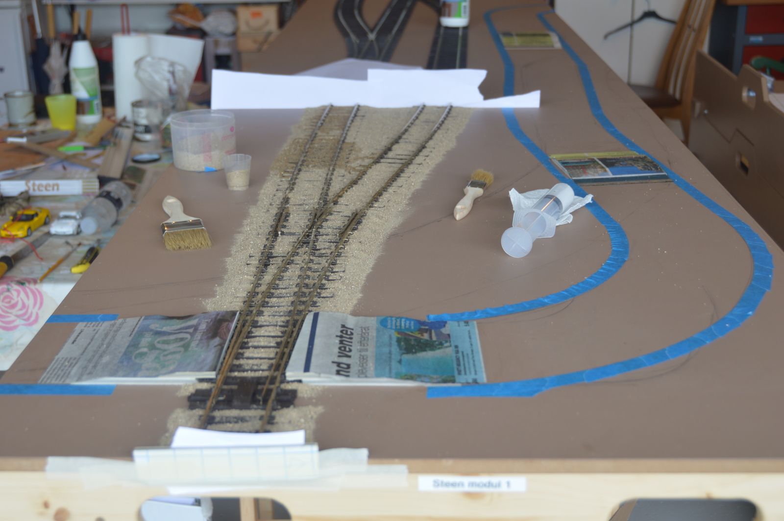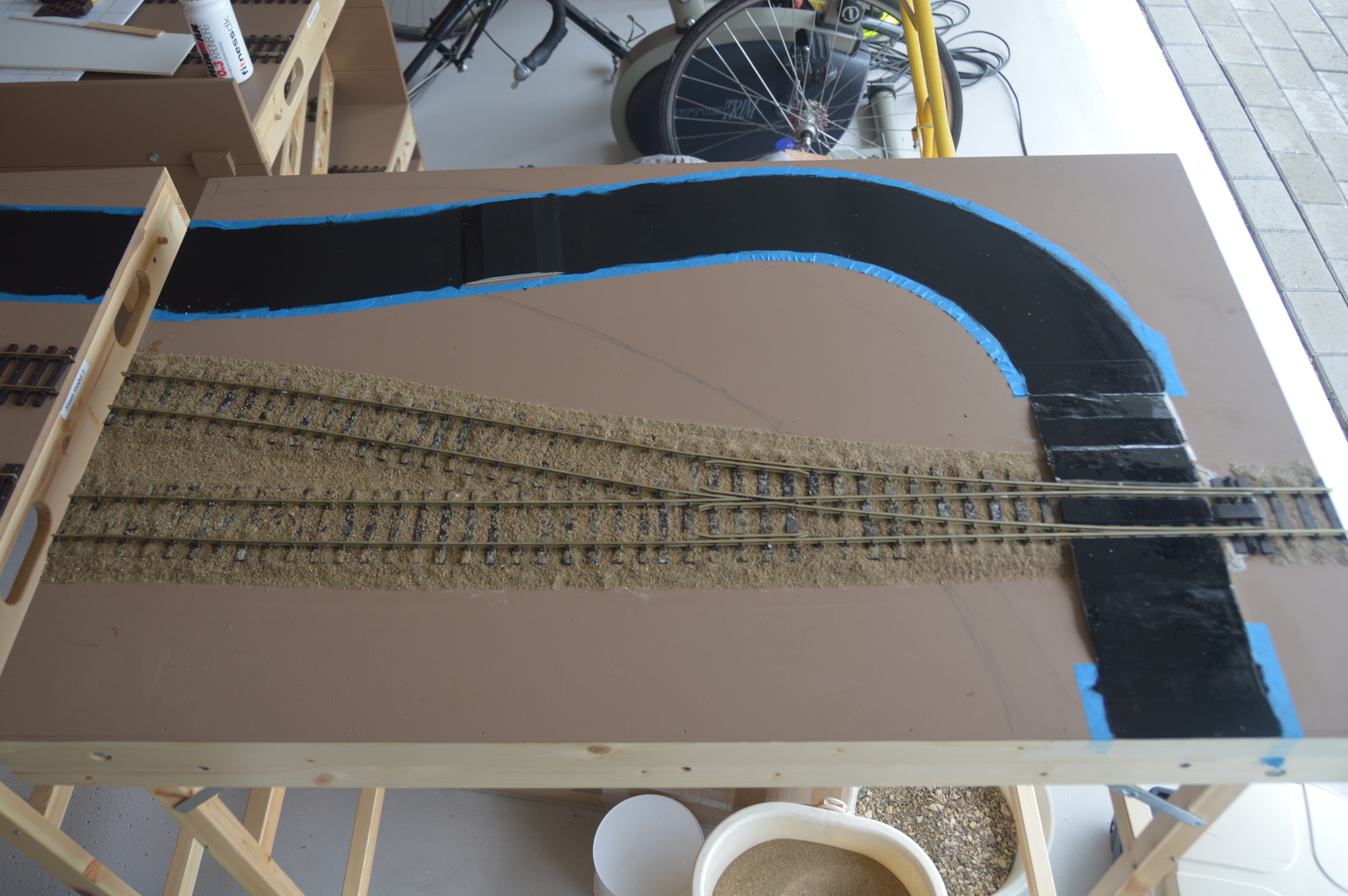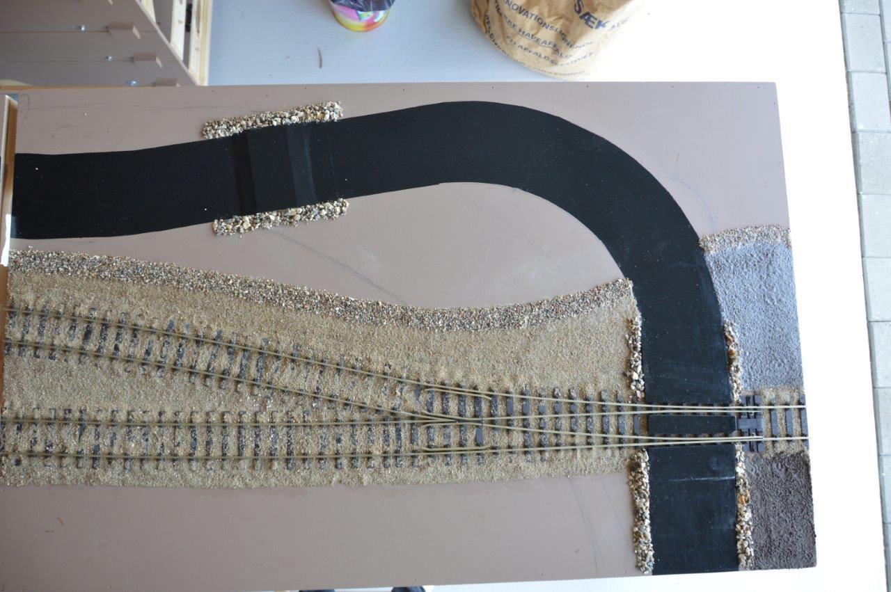 I forbindelse med vejbyggeriet, blev også sporene gruset, og straks kan man danne sig et billede af hvordan det færdige modul kommer til at tage sig ud.