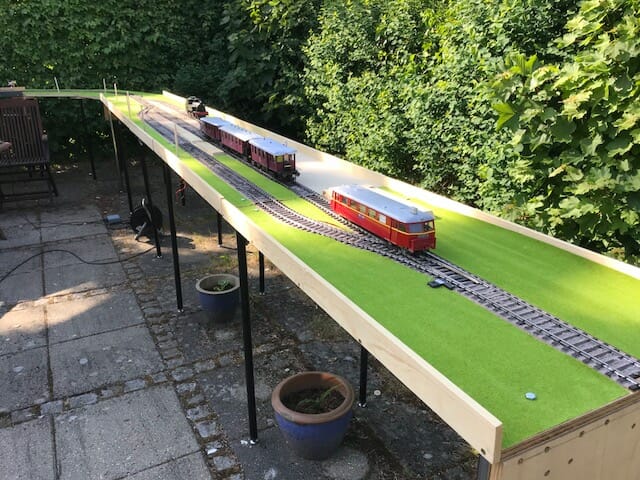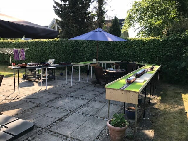 Sideløbende med byggeriet af T-maskinen, har Carsten Høg også tages sig tid til at hygge sig ude i sommersolen, her har han opstillet en del af sine moduler, og hygget sig med at motionere sine privatbane lokomotiver og vogne. Han har dermed på bedste måde bevist, at det ikke kun er om vinteren man kører med modeltog.